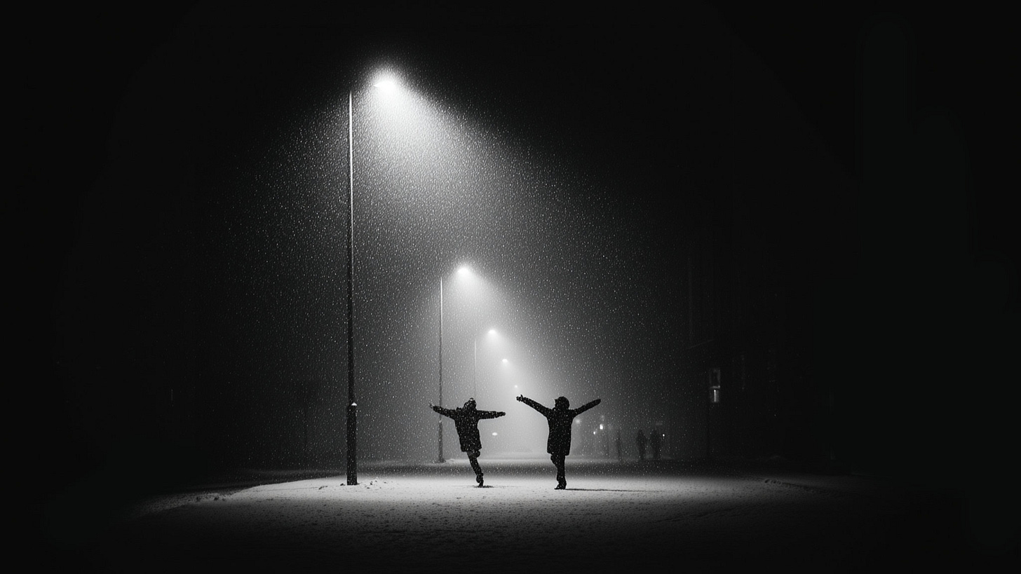 From somewhere high above us, giant snowflakes were falling—peacefully, steadily—drifting down to earth.